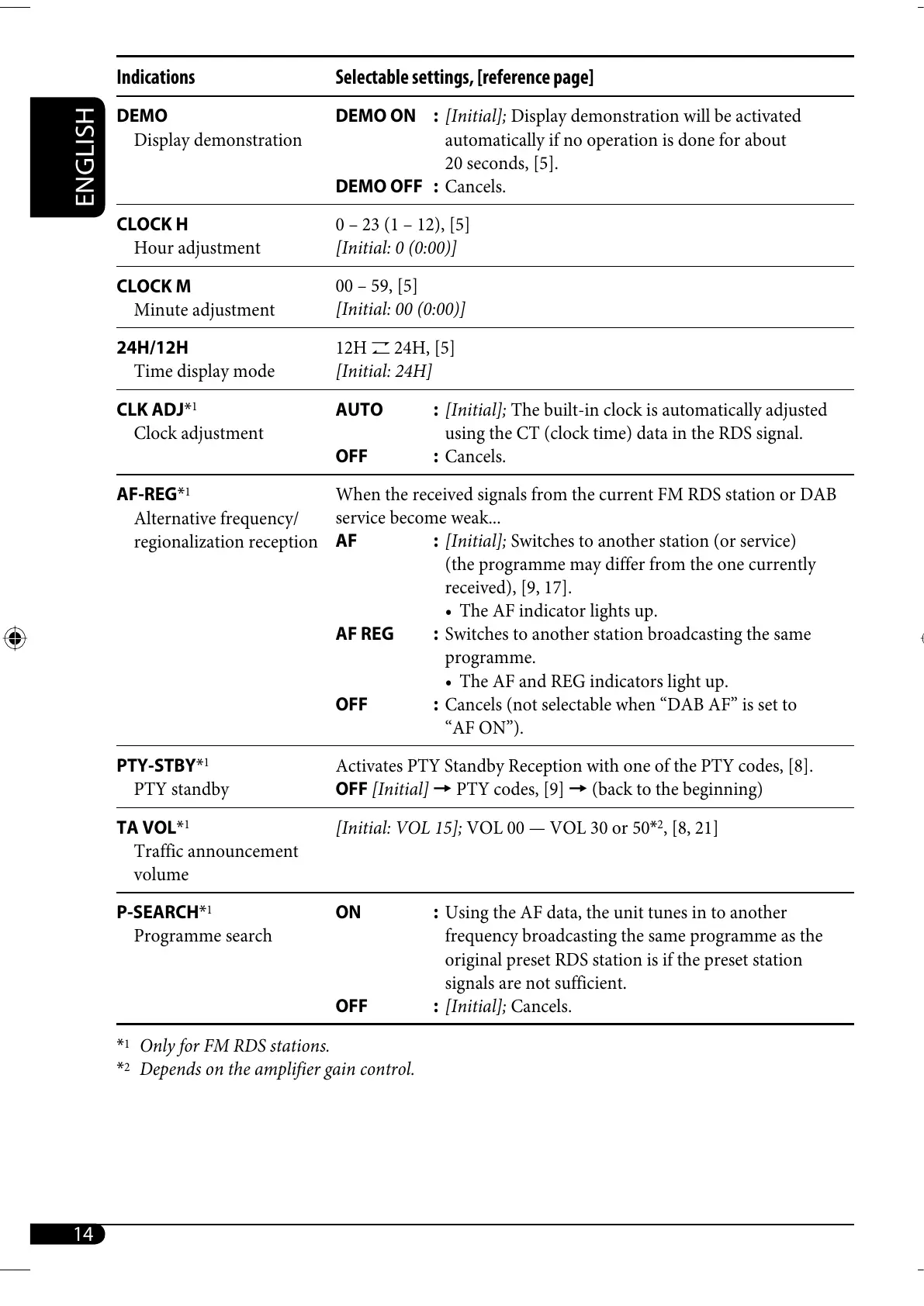 OFF [Initial] = PTY codes, [9] = (back to the beginning)