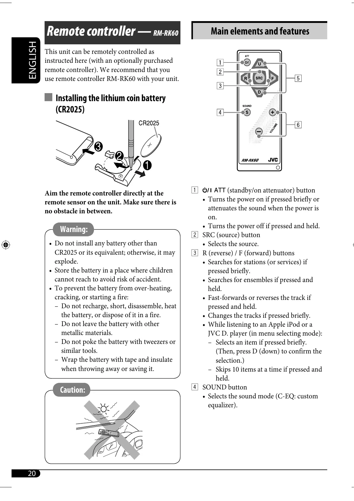use remote controller RM-RK60 with your unit.
