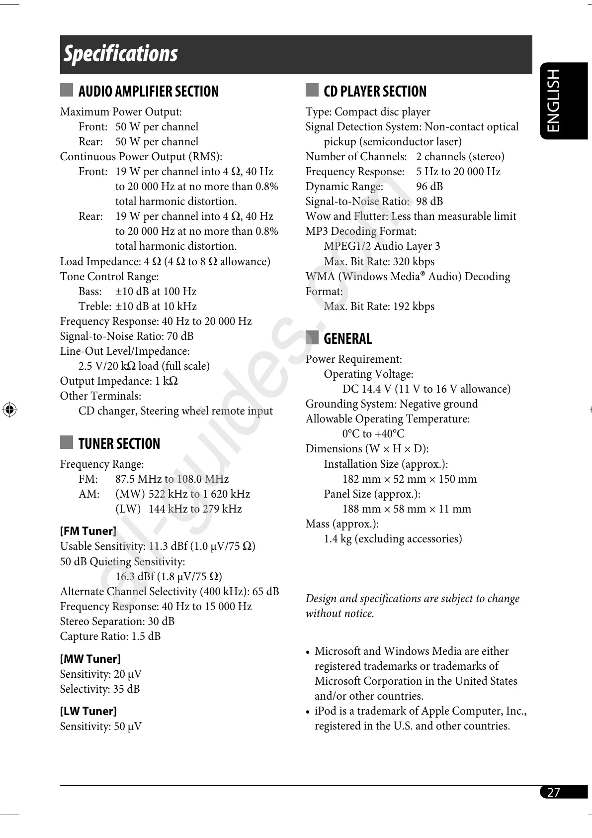 • iPod is a trademark of Apple Computer, Inc.,