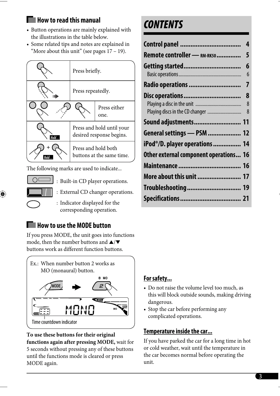 iPod®/D. player operations ................ 14
