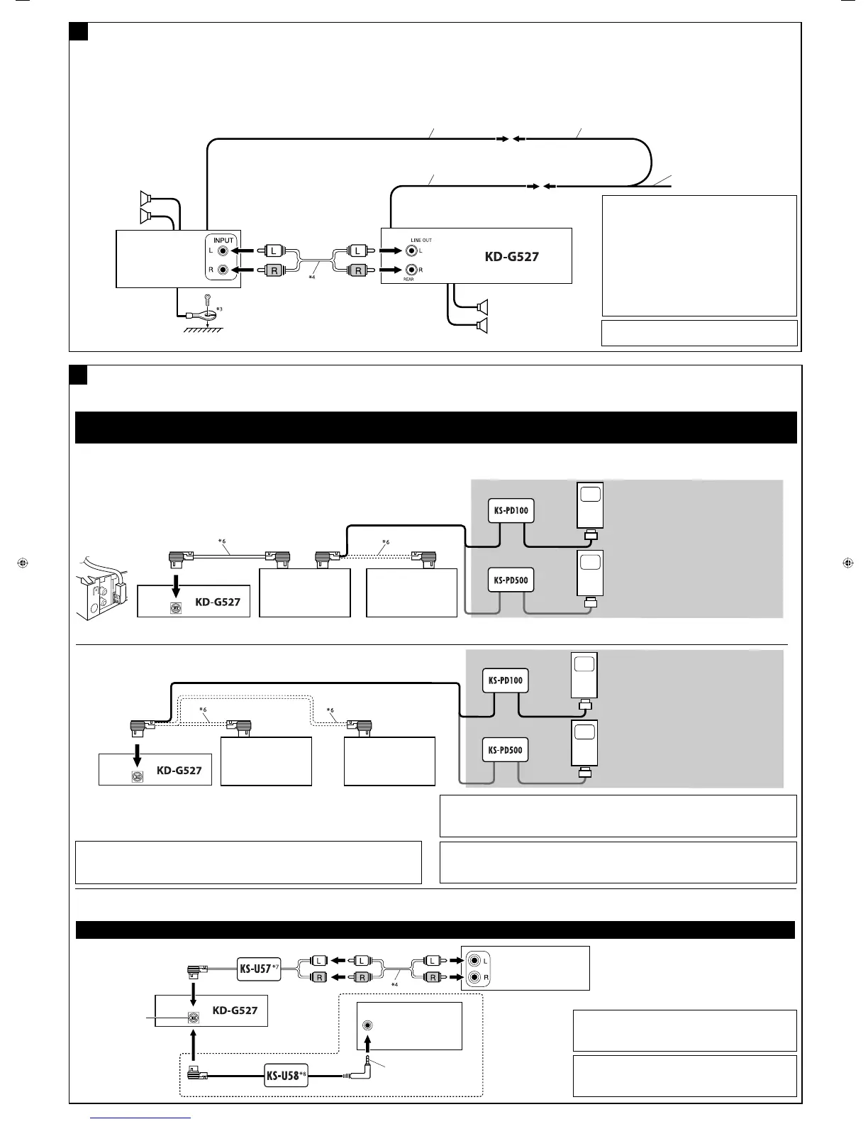 or D. player can be connected using an interface adapter (not supplied)—KS-PD100 (for iPod) or KS-PD500 (for D. player).