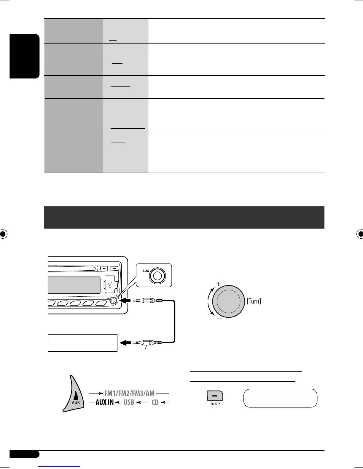 For KD-G441: Displayed only when “L/O MODE” is set to “SUB.W.”