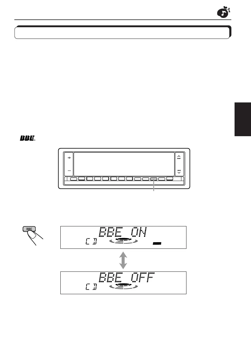 Chaque fois que vous appuyez sur BBE, la fonction BBE est mise alternativement en et hors