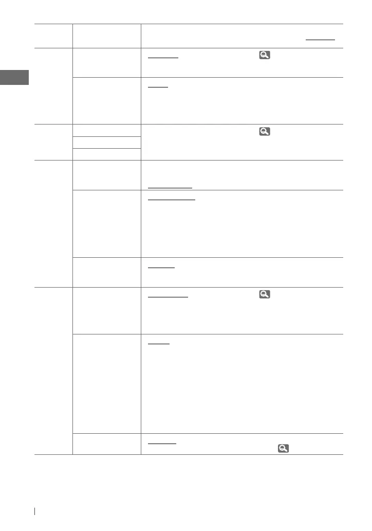Réglages pouvant être choisis, [ Réglage initial: Souligné ]