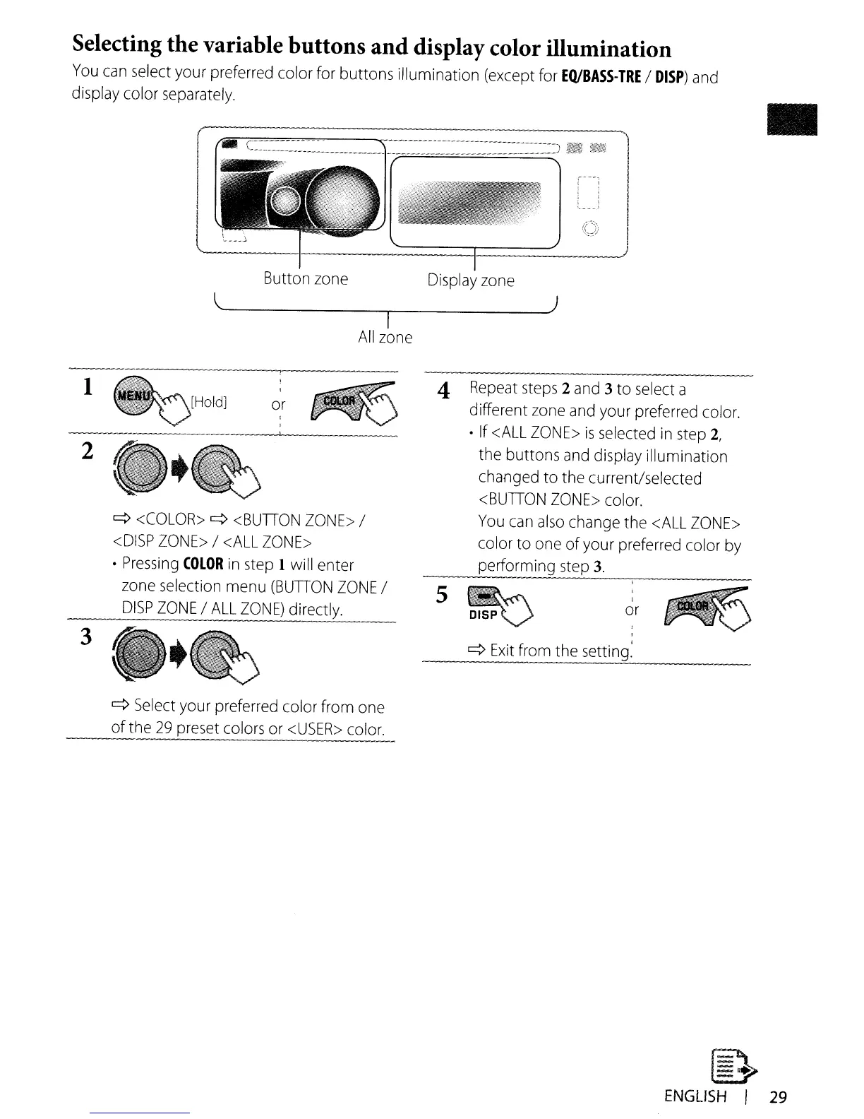 Selecting the variable buttons and display color illumination