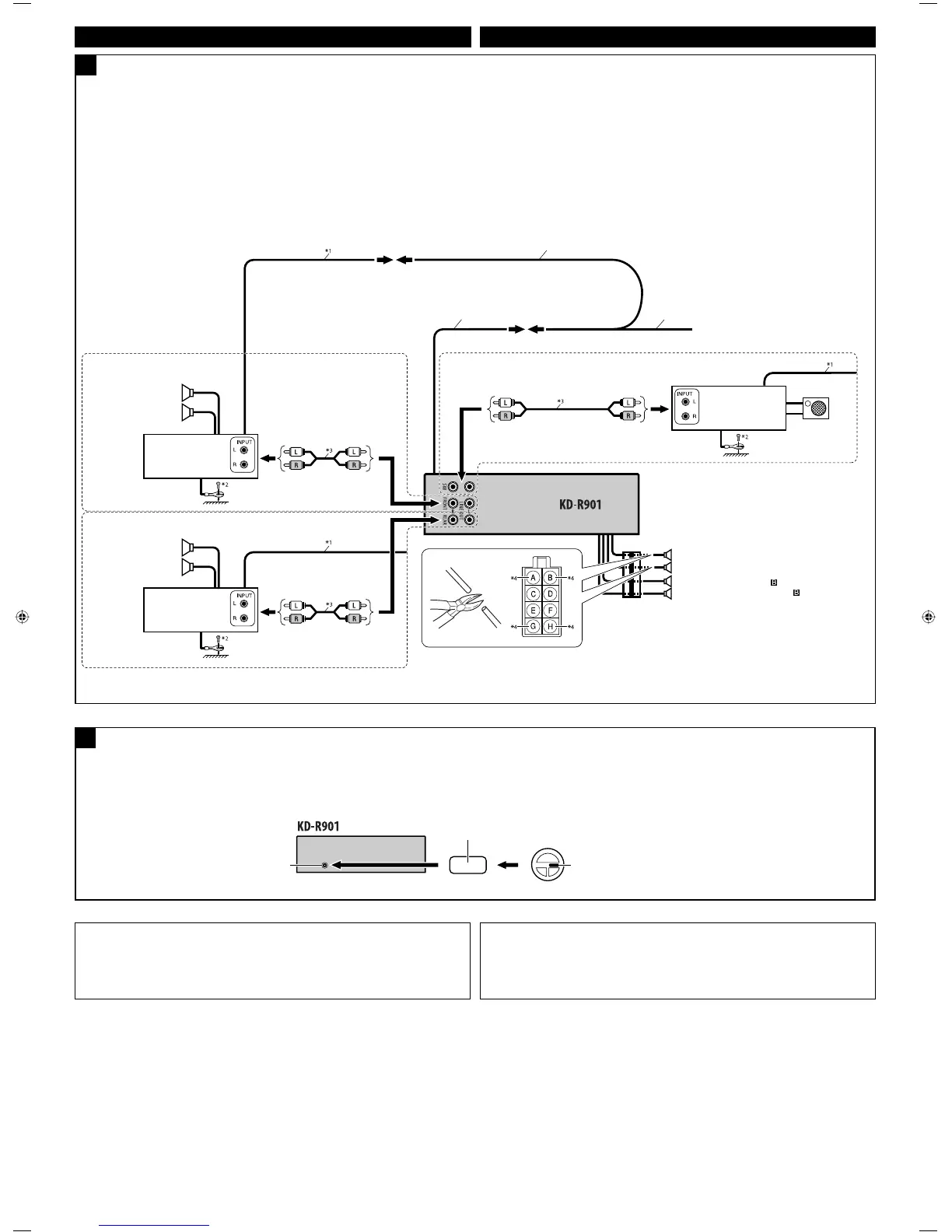 Connecting the external amplifiers and subwoofer / Connexion d’amplificateurs extérieurs et d’un caisson de grave