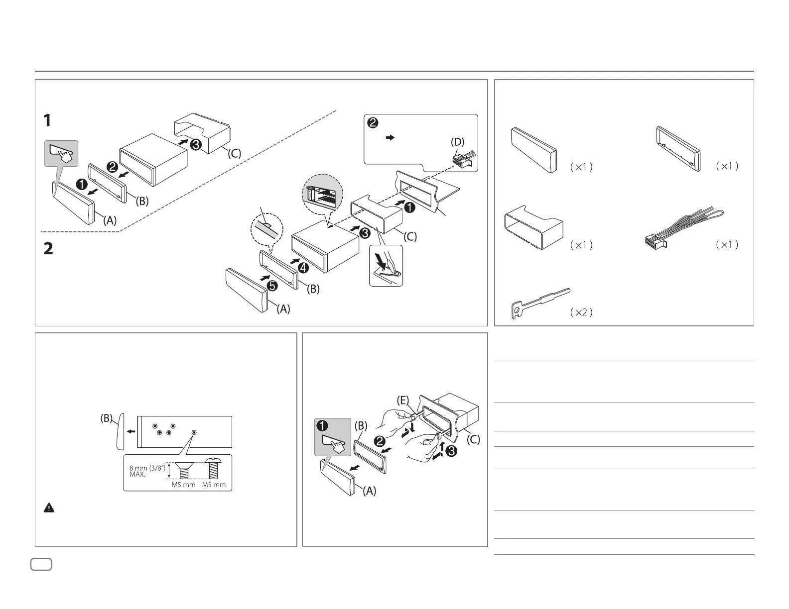 Part list for installation