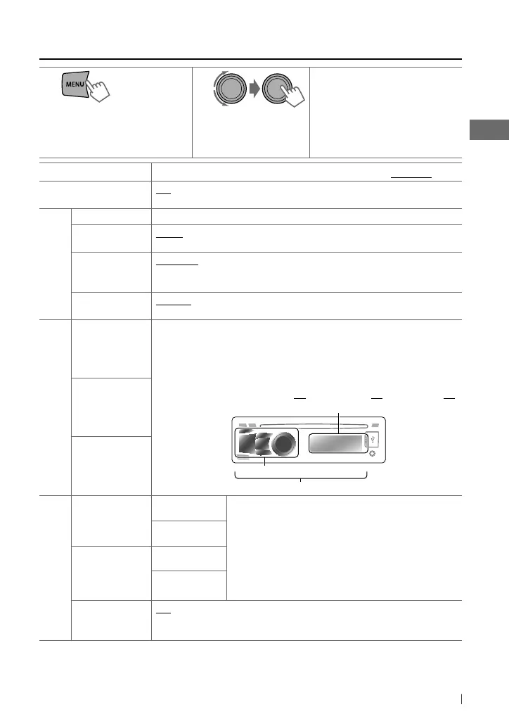 Réglages pouvant être choisis, [ Réglage initial: Souligné ]