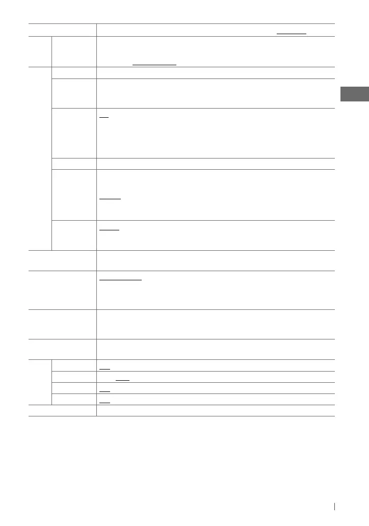 Réglages pouvant être choisis, [ Réglage initial: Souligné ]