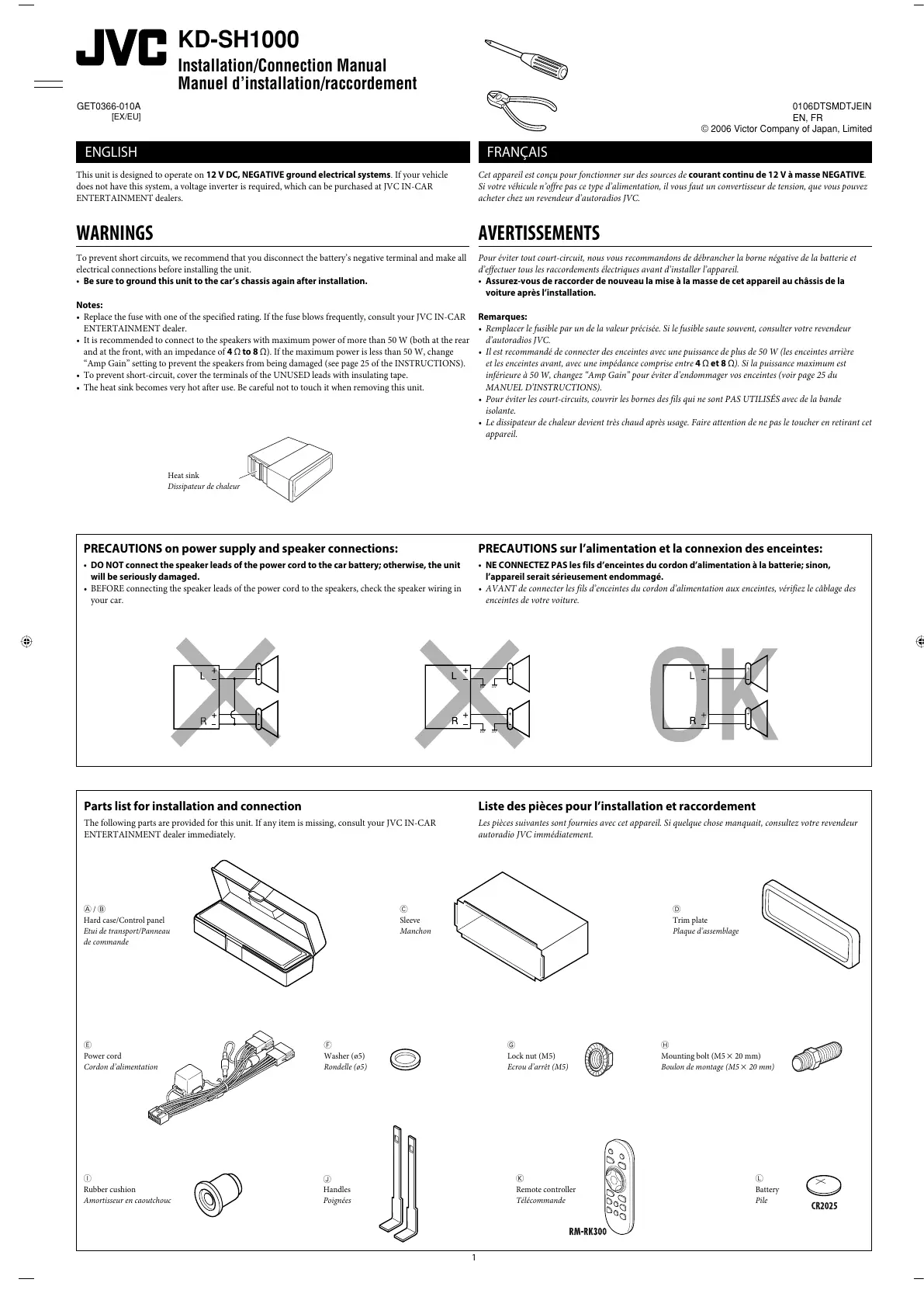 The following parts are provided for this unit. If any item is missing, consult your JVC IN-CAR