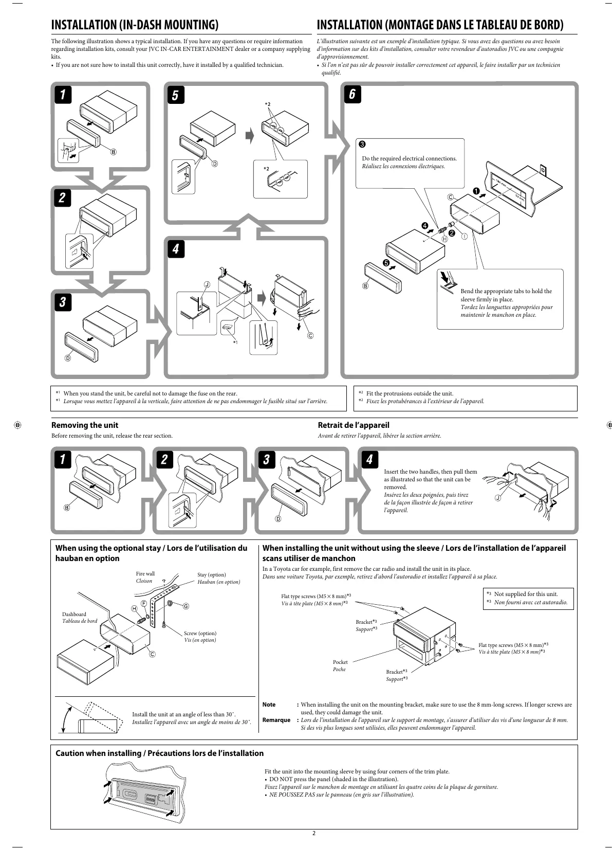 When installing the unit without using the sleeve / Lors de l’installation de l’appareil