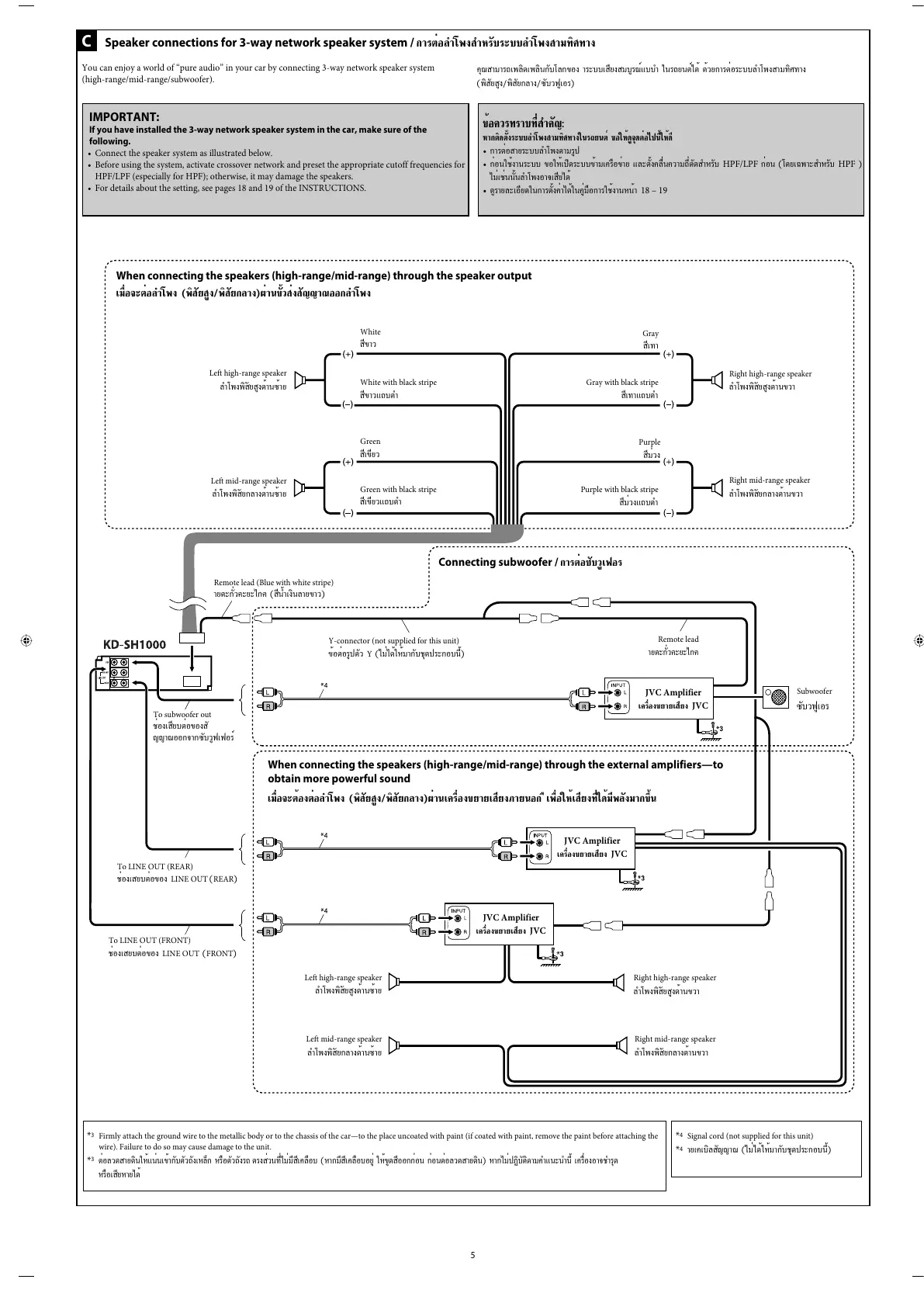 When connecting the speakers (high-range/mid-range) through the external amplifiers—to