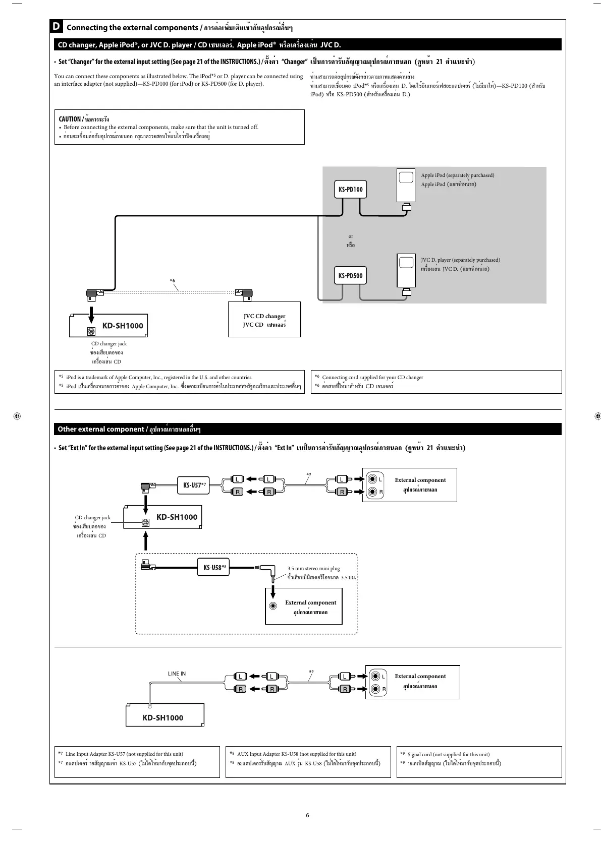 CD changer, Apple iPod®, or JVC D. player / CD ‡™π‡®Õ√Ï, Apple iPod® À√◊Õ‡§√◊ËÕ߇≈Ëπ JVC D.