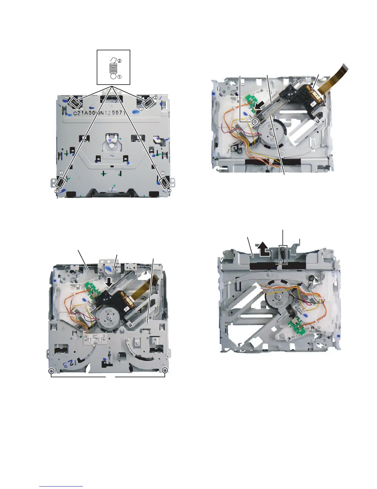 (1) Remove the 4 springs from the TRAVERSE MECHANISM.
