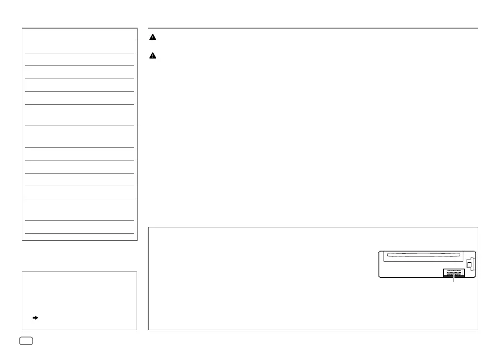 • Ajustez le volume de façon à pouvoir entendre les sons extérieurs à la voiture afin d’éviter tout risque d’accident.