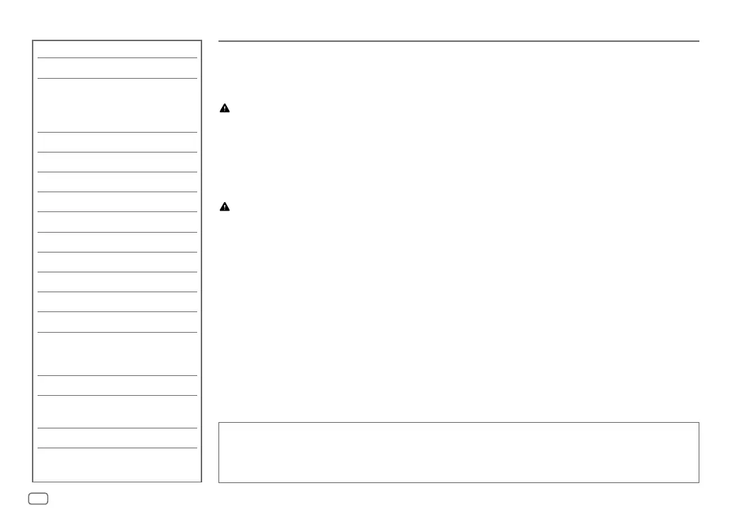 • Ajustez le volume de façon à pouvoir entendre les sons extérieurs à la voiture afin d’éviter tout risque d’accident.