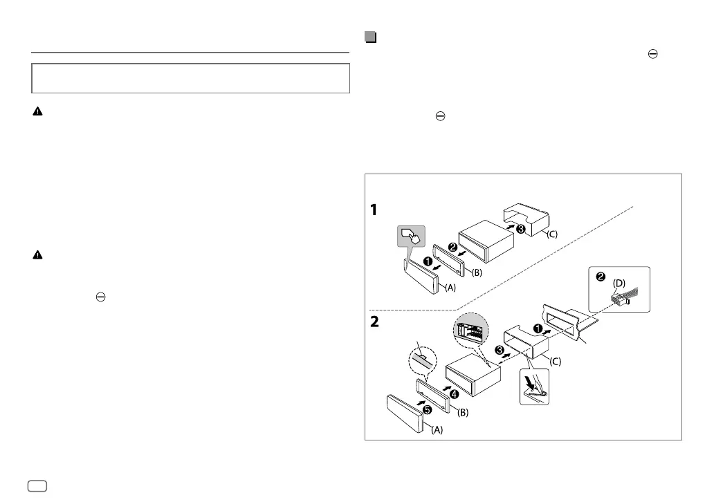 Install this unit in the console of your vehicle. Do not touch the metal parts of this unit during and shortly