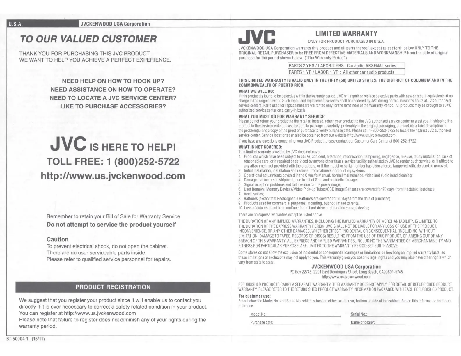 THANK YOU FOR PURCHASING THIS JVC PRODUCT.