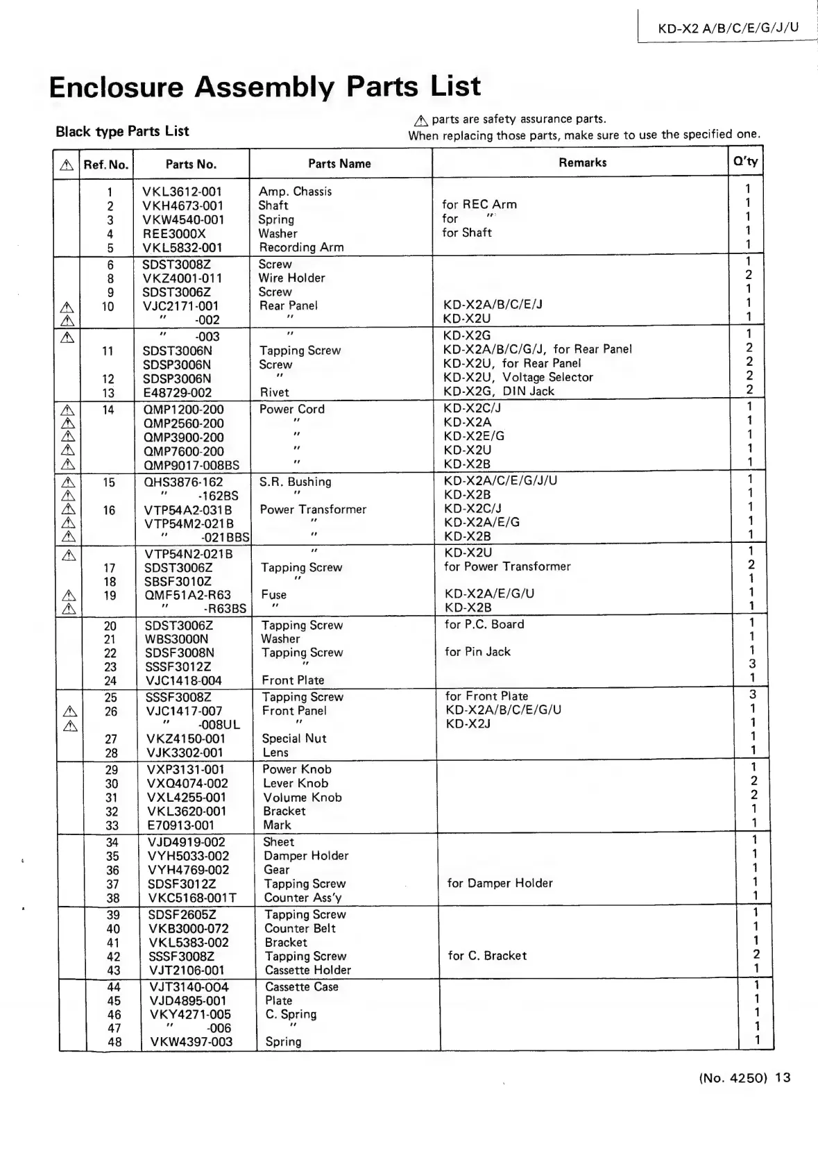 JVC KD-X2 - Enclosure Assembly Parts List