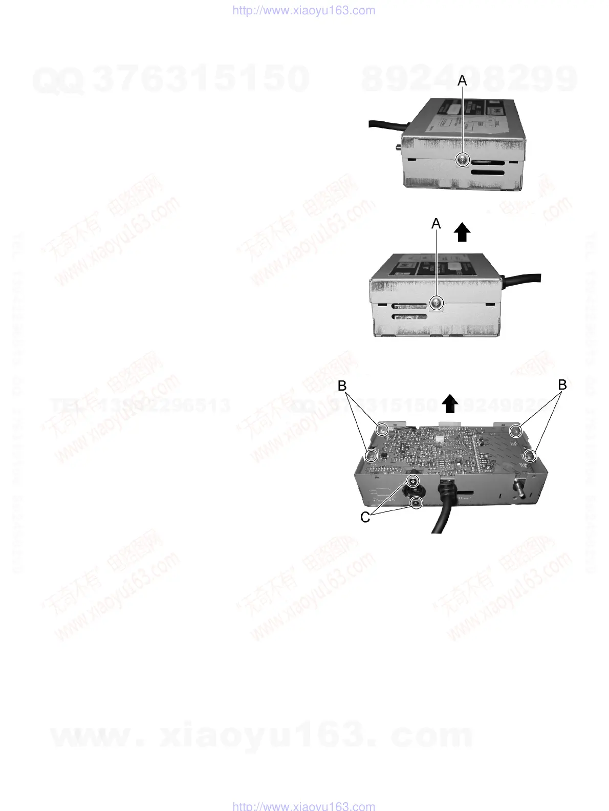 (1) Remove the four screws B and the two screws C that at-