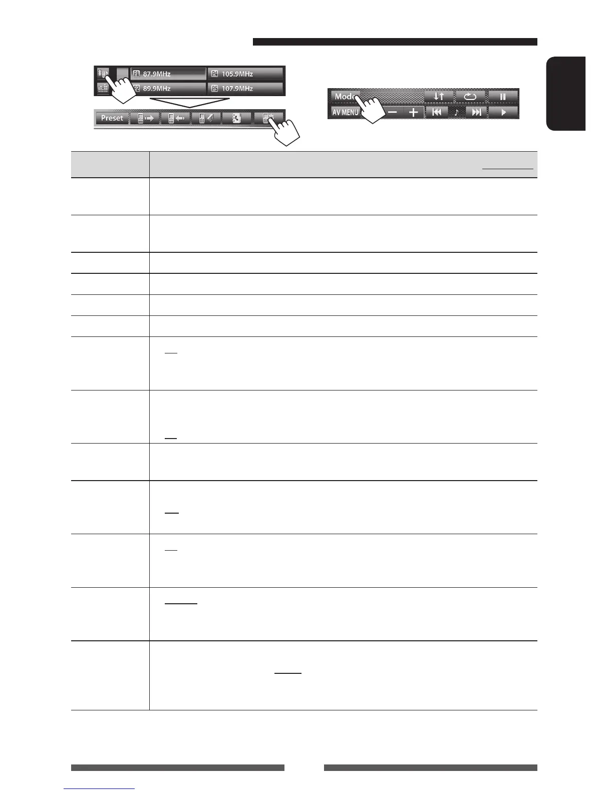 Appears only for <Mode> screen while “