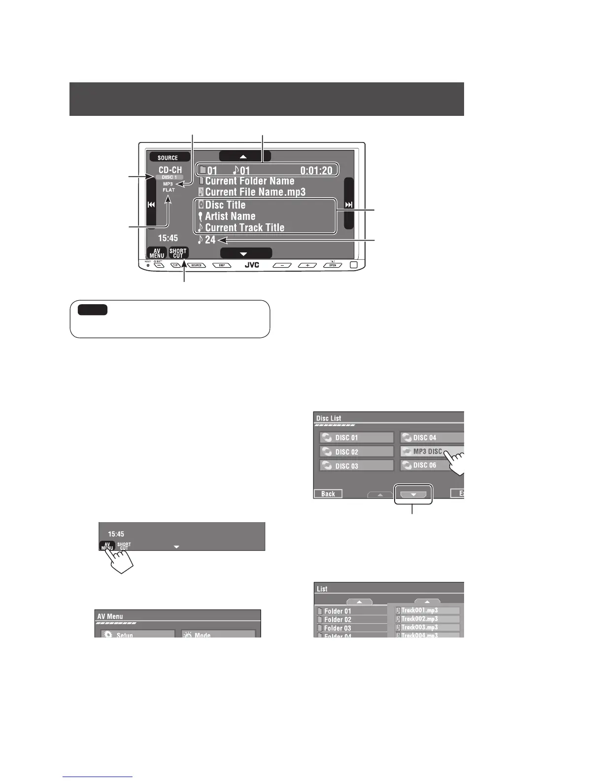 It is recommended to use a JVC MP3-compatible CD changer with your unit.