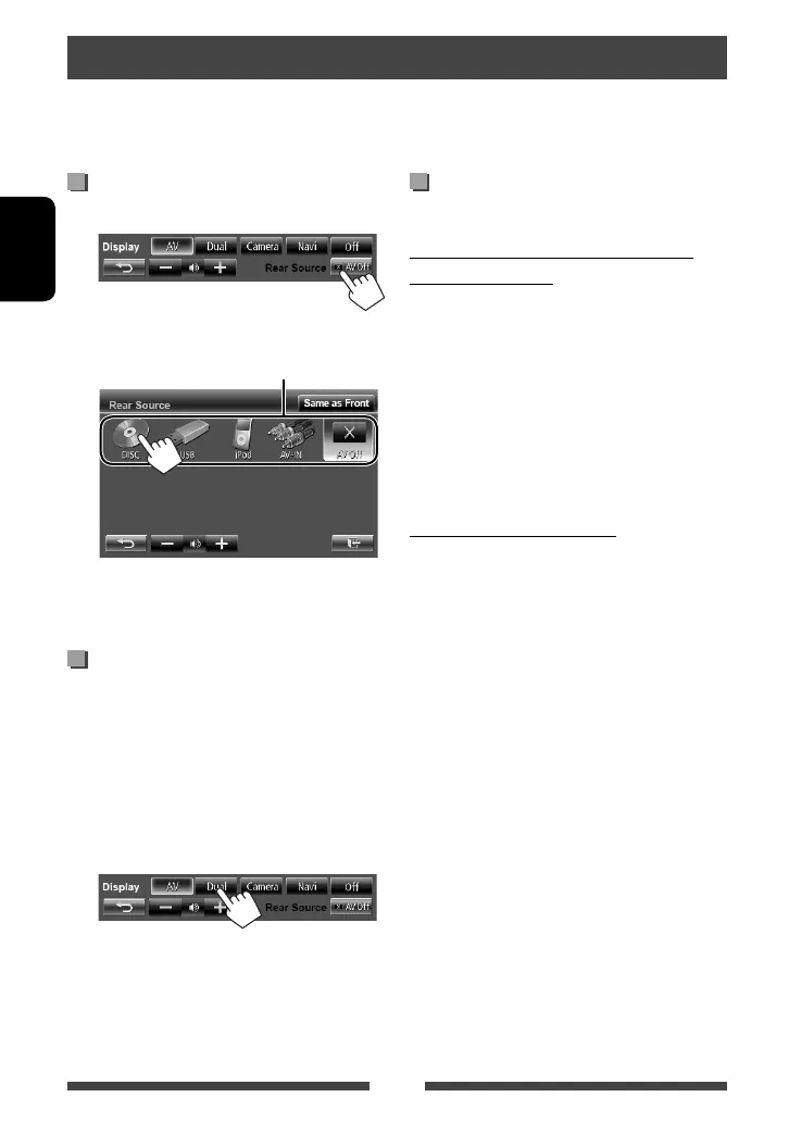 Es posible disfrutar de la reproducción de la fuente trasera en el monitor externo conectado a las clavijas VIDEO OUT y