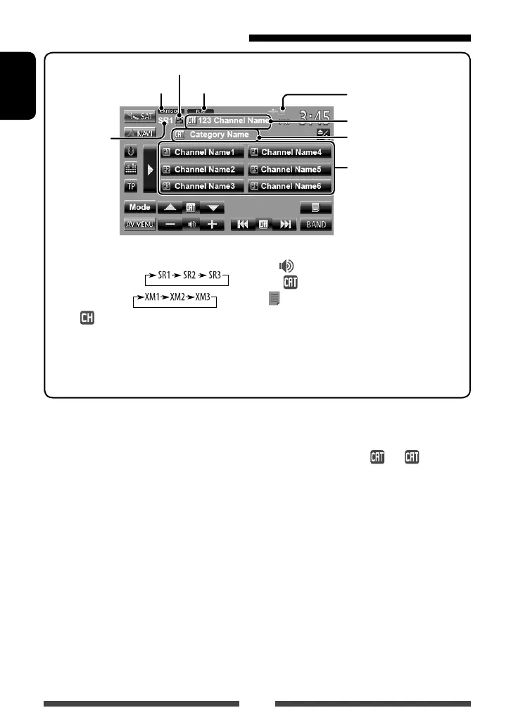 Sound mode (☞ page 37)CATEGORY indicator (only for XM)