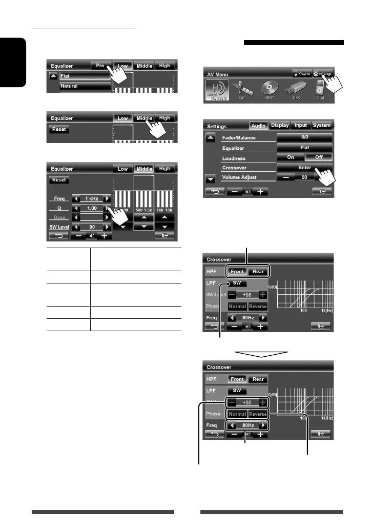 Adjusts the cross over for subwoofer (low pass filter).