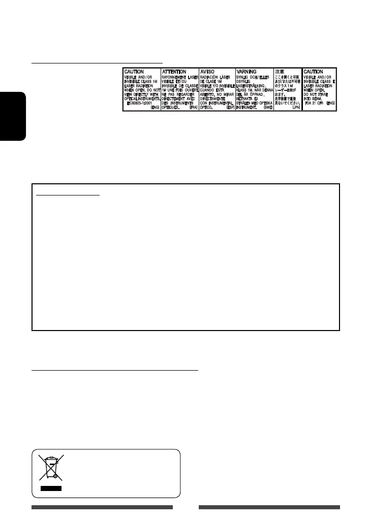 Los cambios o modificaciones no aprobados por JVC pueden anular la autoridad del usuario para operar el equipo.