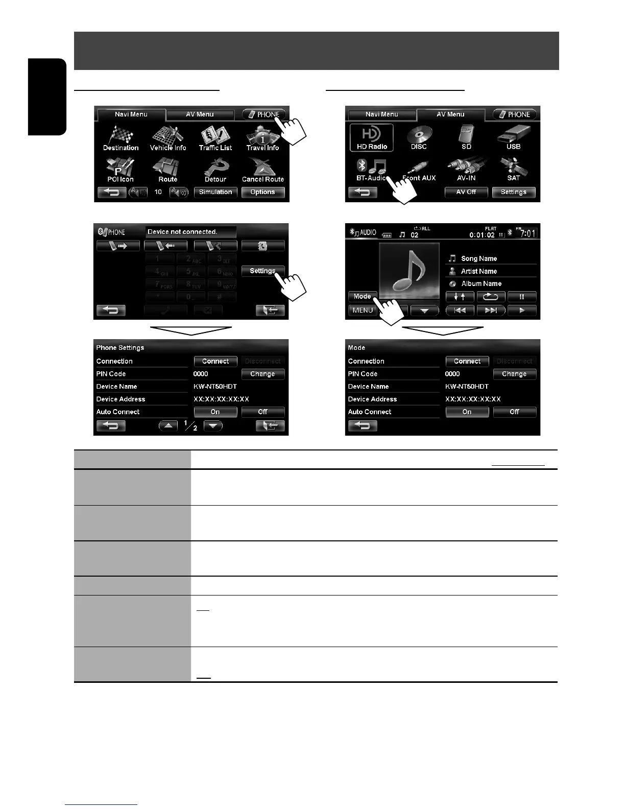 Device Name Shows the device name to be shown on the Bluetooth device — “KW-NT50HDT” or