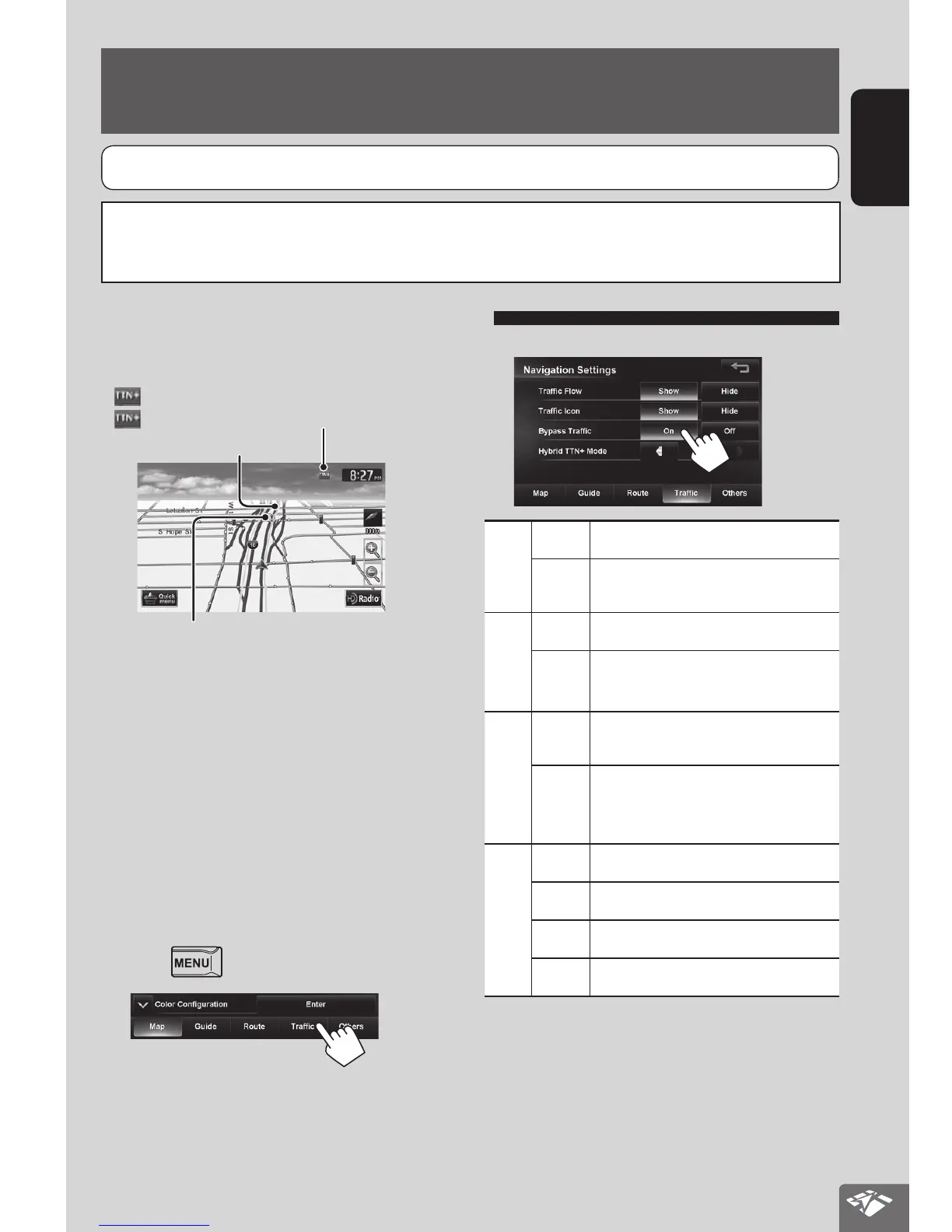<Traffic Icon> setting activated. (☞ table on the