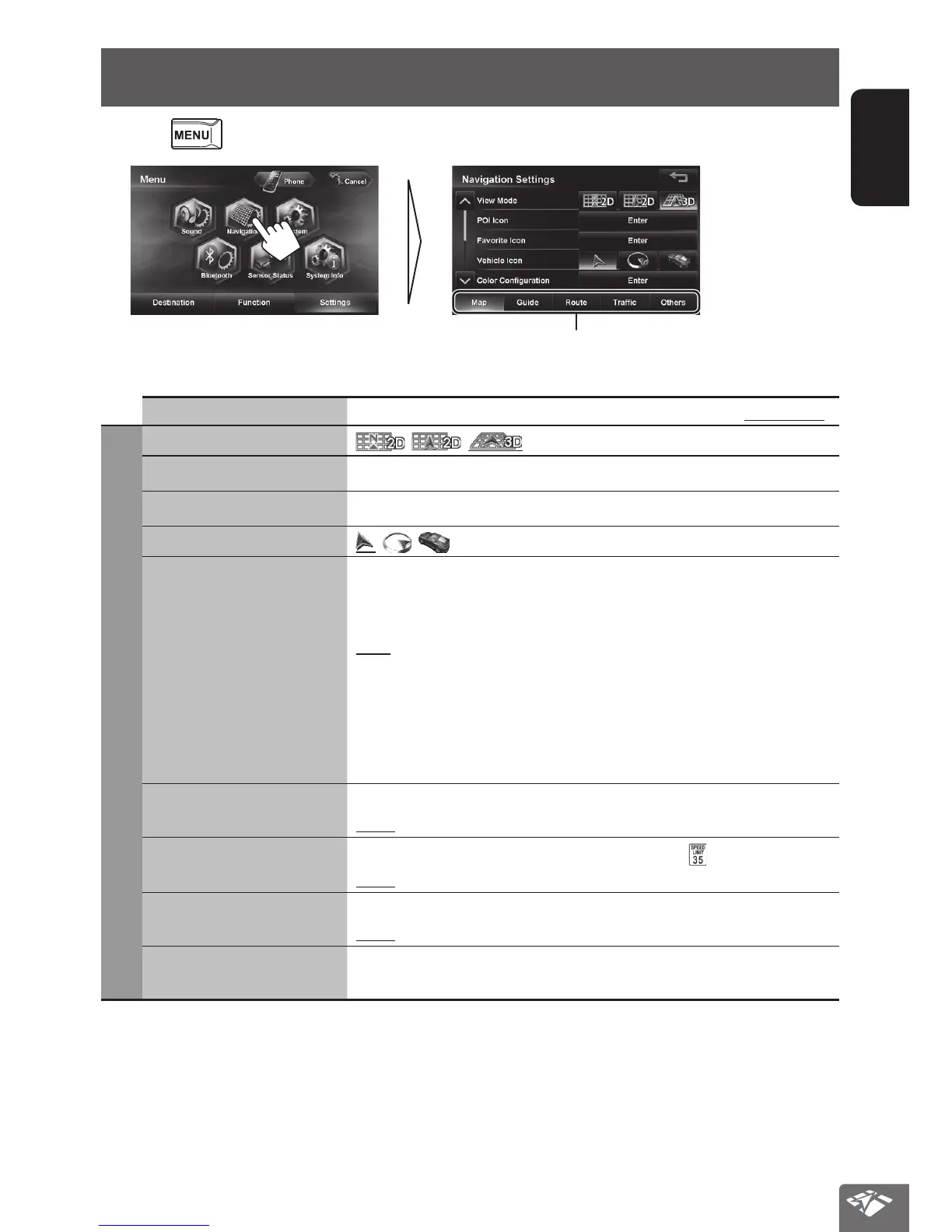 Color configuration Change the color of the map for the day and night screens. Press [Enter] to