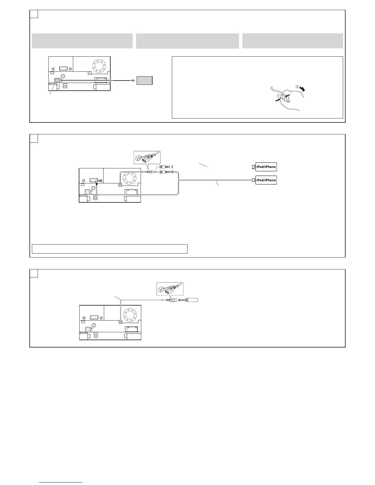 Connecting the iPod or the iPhone / Conexión del iPod o iPhone / Connexion d’un iPod ou d’un iPhone