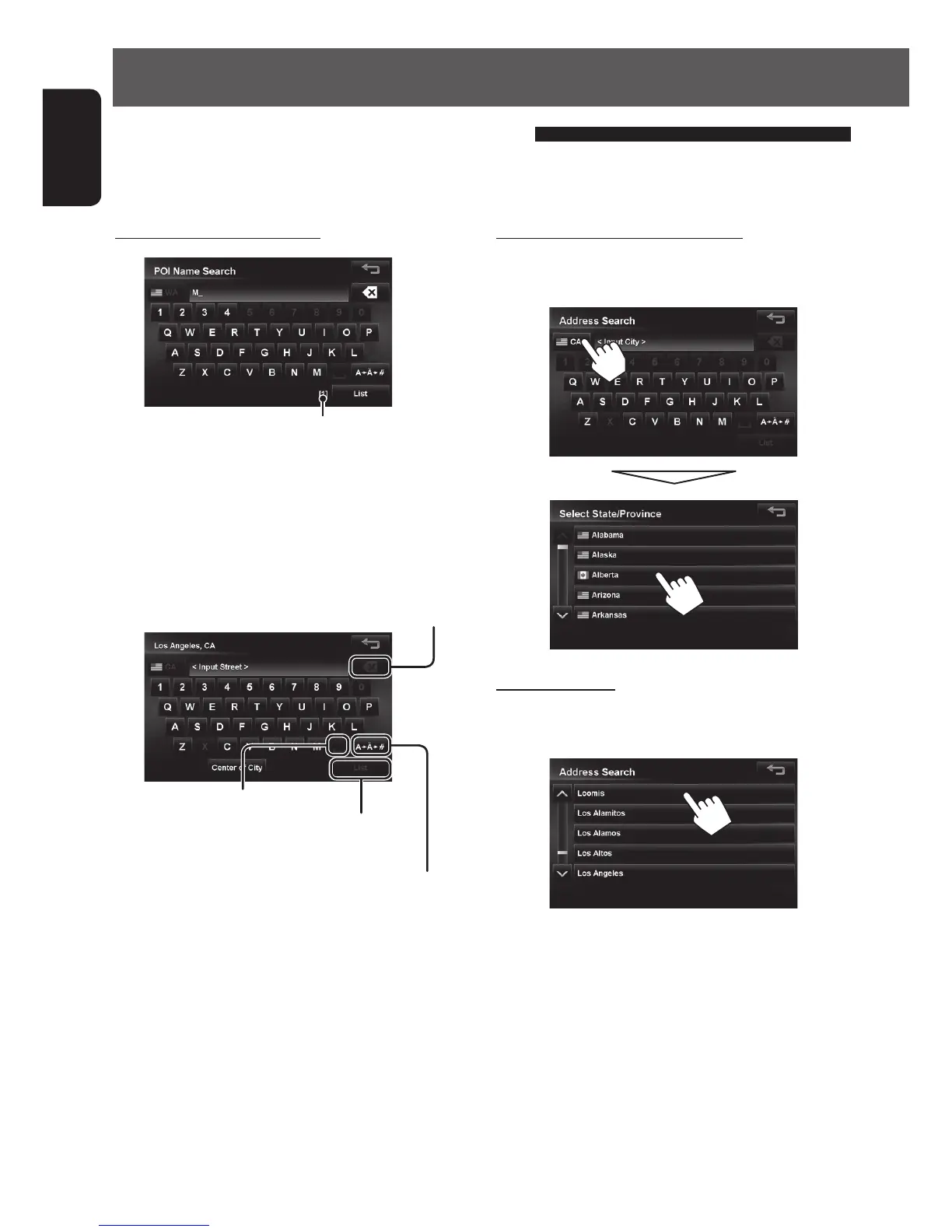 Read through the following instructions for using search screens and input screens before using <Destination>