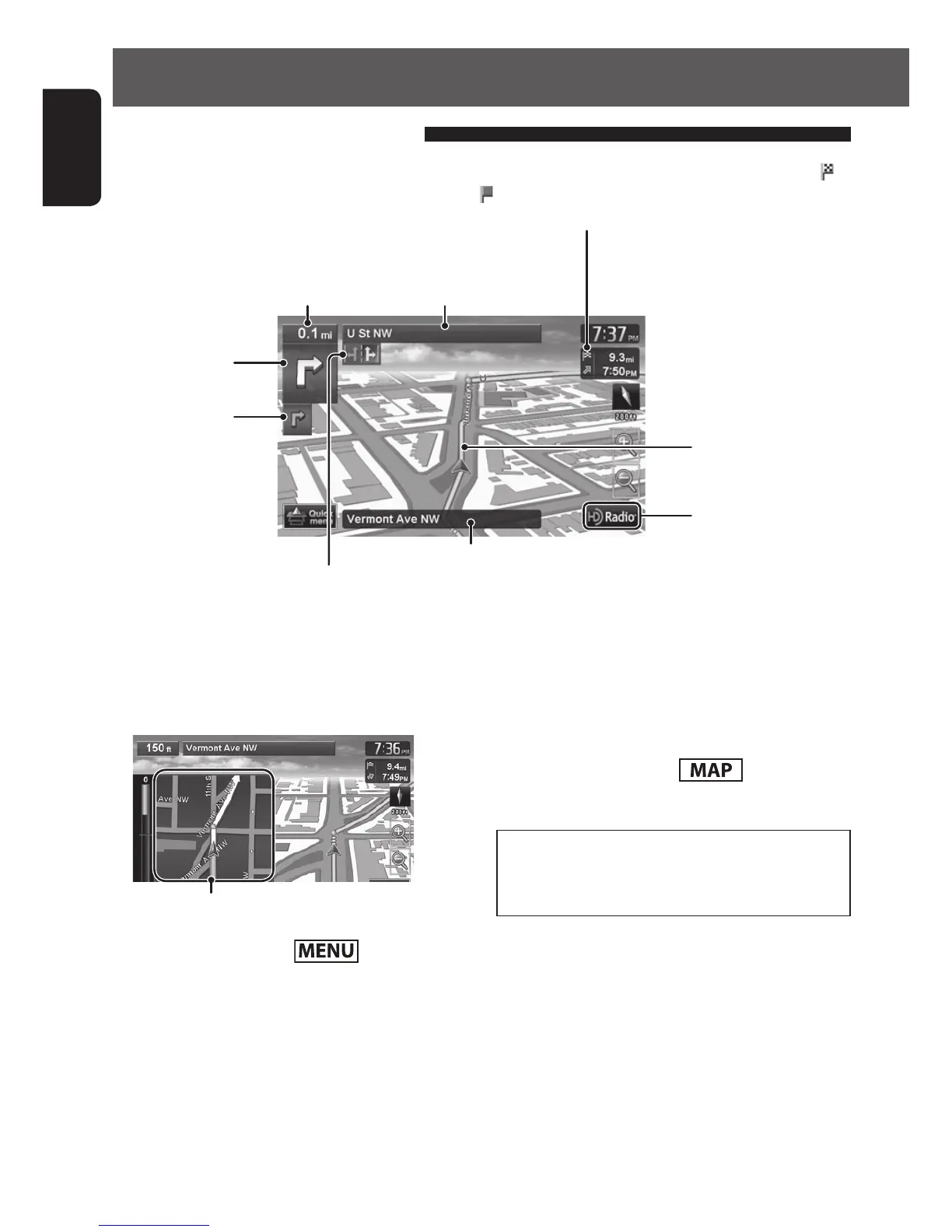 • When you reach the area approximately within 90 ft (30 m) around the destination/via point, the Navigation