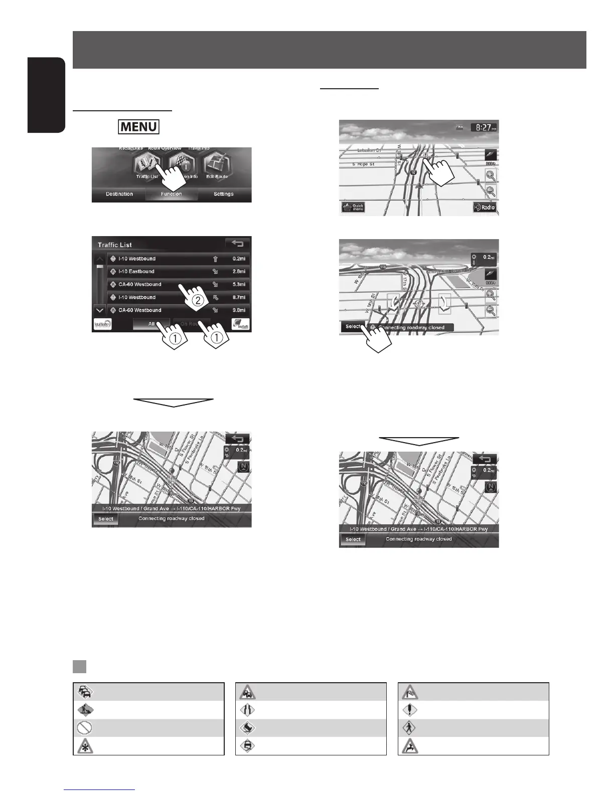 – The list appears only when <Traffic Icon> is