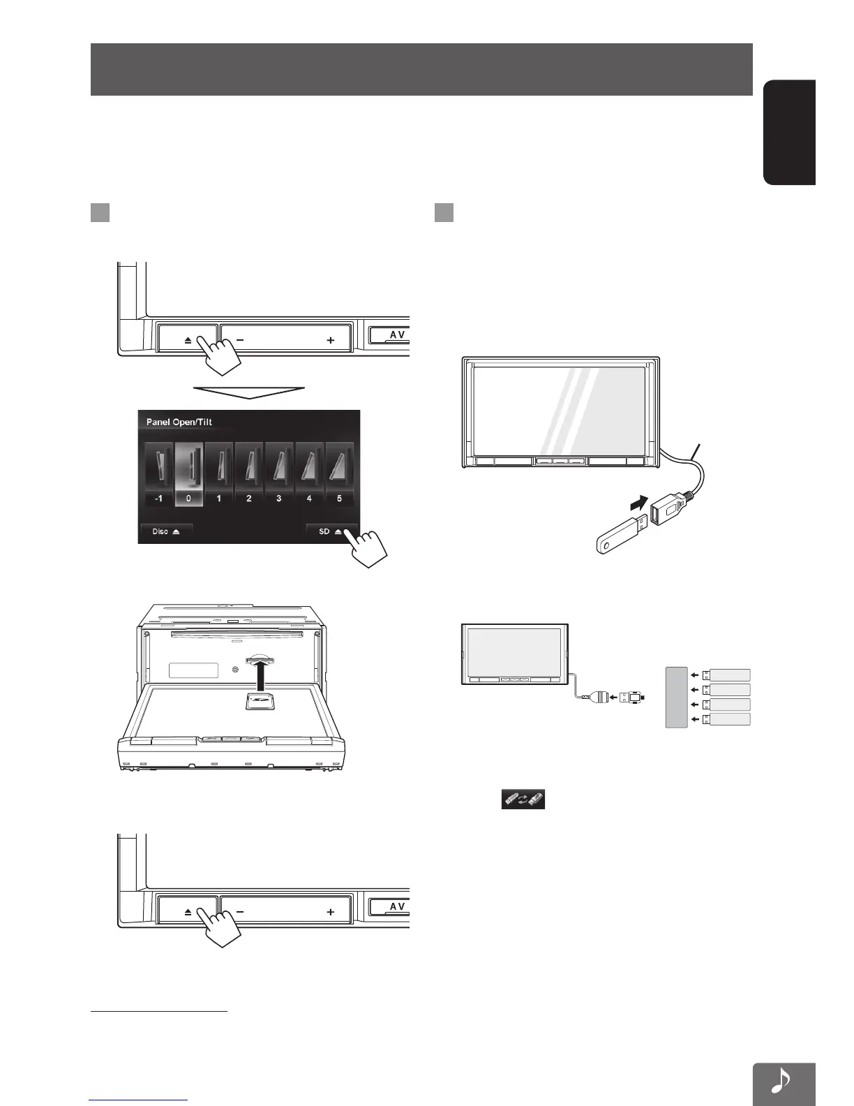 • All tracks in the SD card/USB device will be played repeatedly until you change the source.