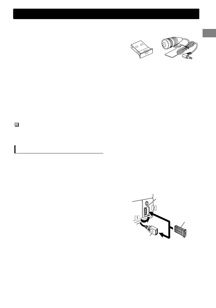 By connecting the supplied KS-UBT1 USB Bluetooth Adapter and microphone to this unit, you can