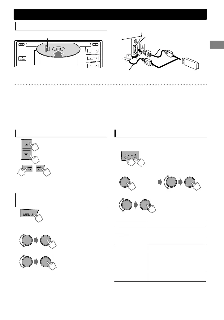 MP3/WMA/WAV contenus dans un périphérique USB à mémoire de grande capacité (tel qu’une