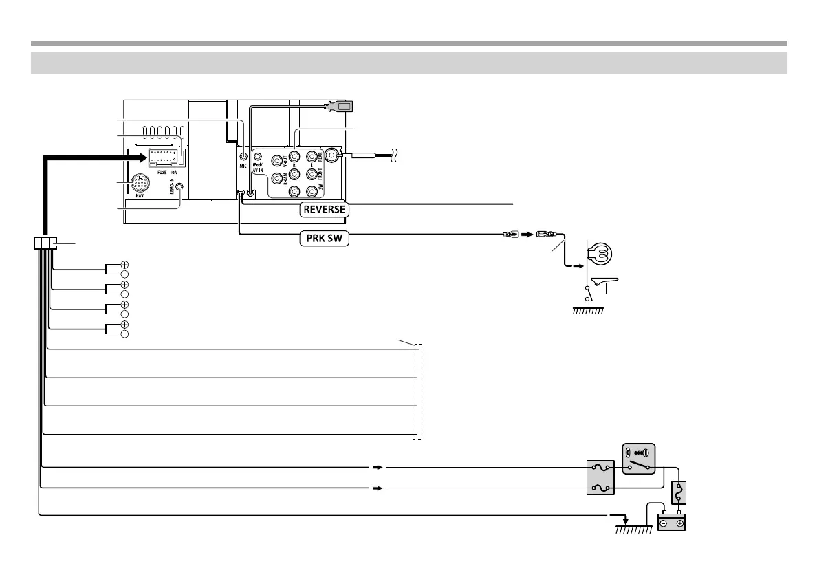 Gray ª / Gray with black stripe · : To front speaker (right)