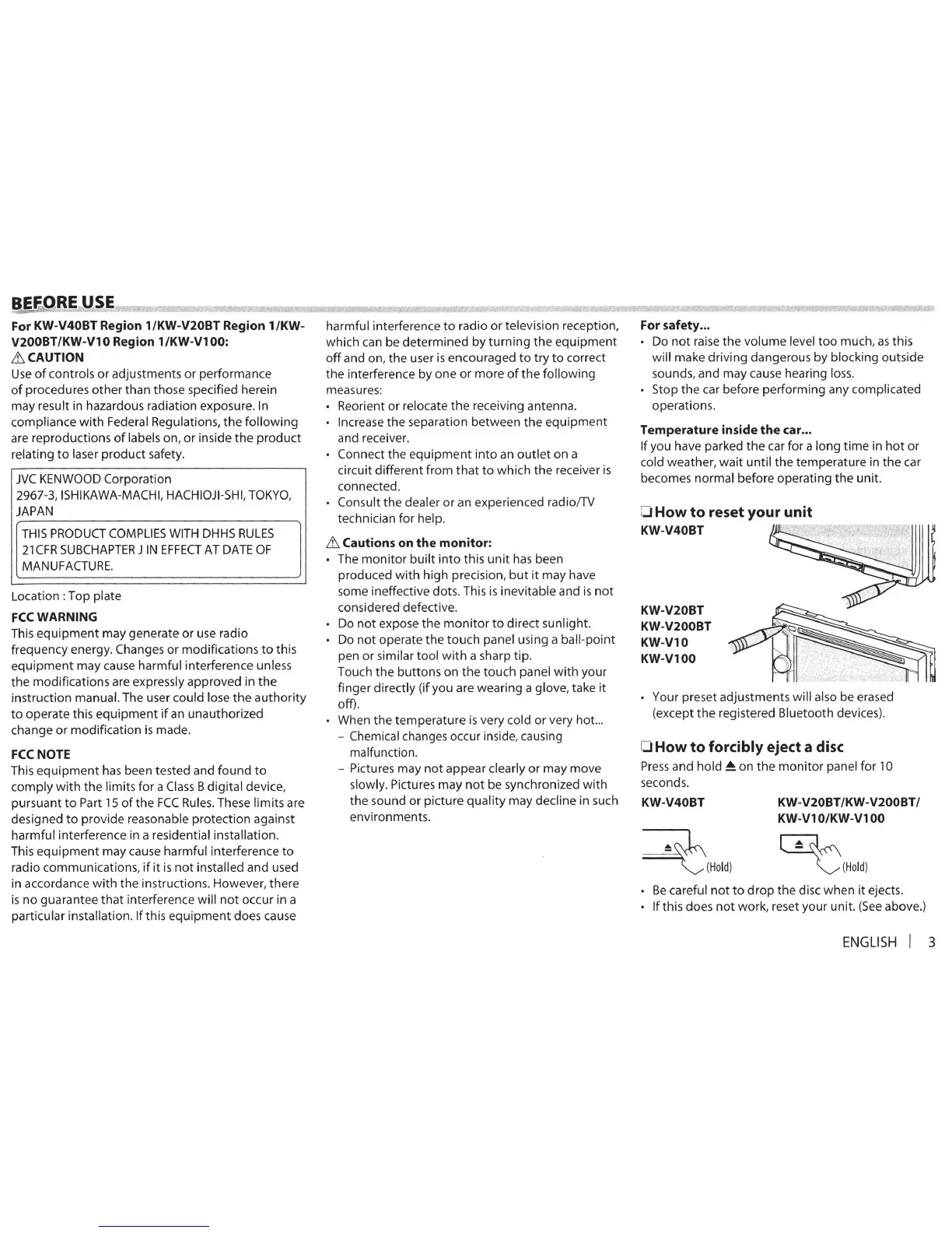 For KW-V40BT Region 1/KW-V20BT Region 1/KW-
