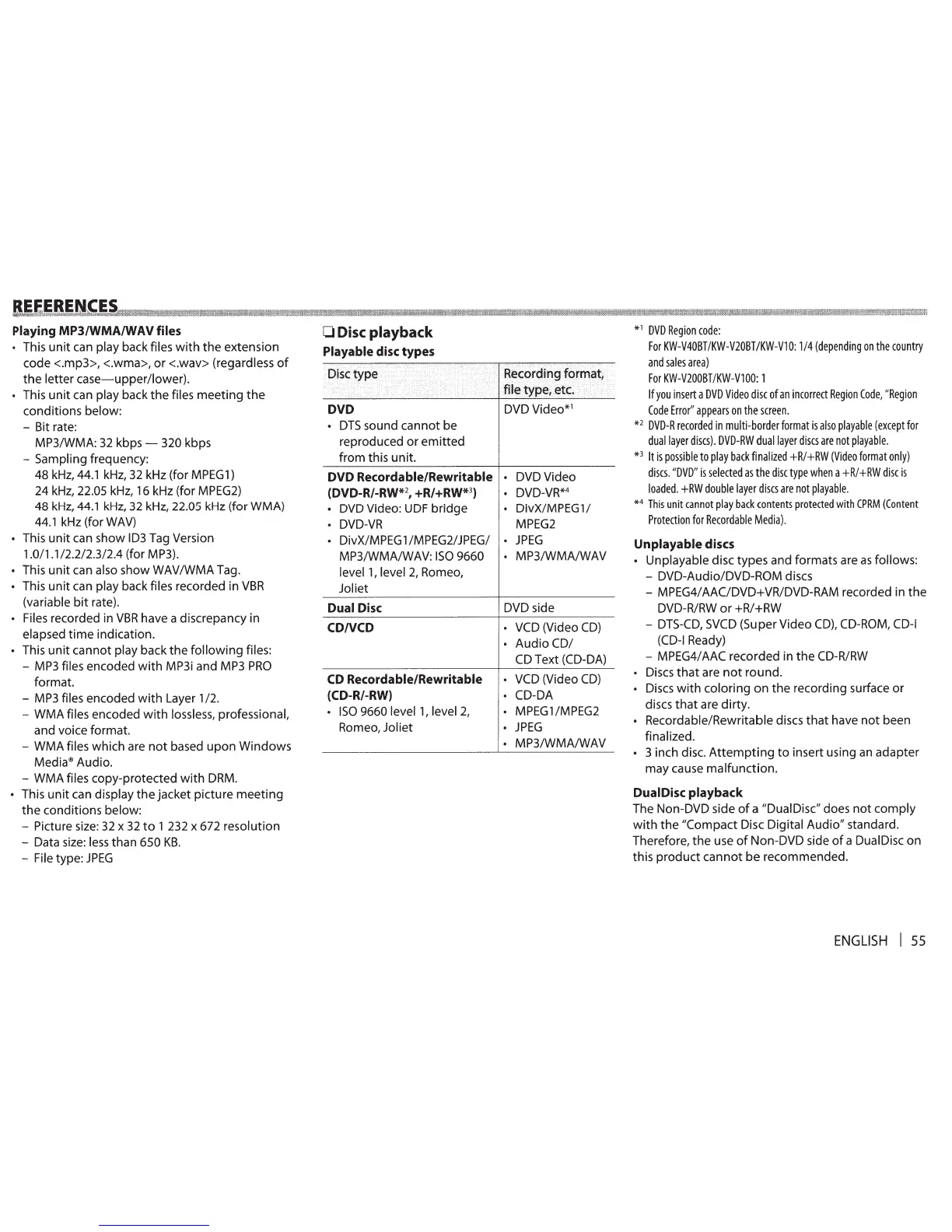 - MPEG4/ AAC/DVD+VR/DVD-RAM recorded in the