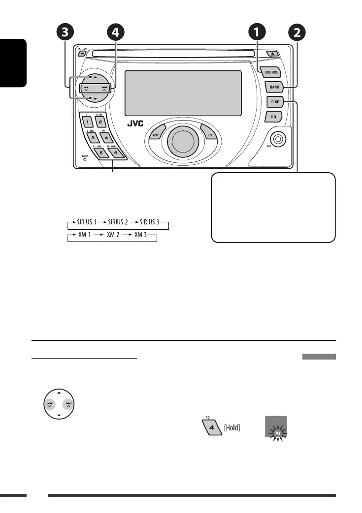 • XM: If you do not select a channel within 15 seconds, category selected in step ! is canceled. You can select