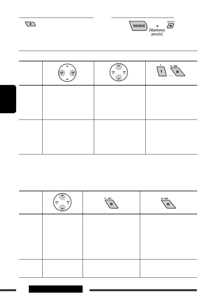 • Pour annuler la lecture répétée ou la lecture aléatoire, choisissez “RPT OFF” ou “RND OFF”.