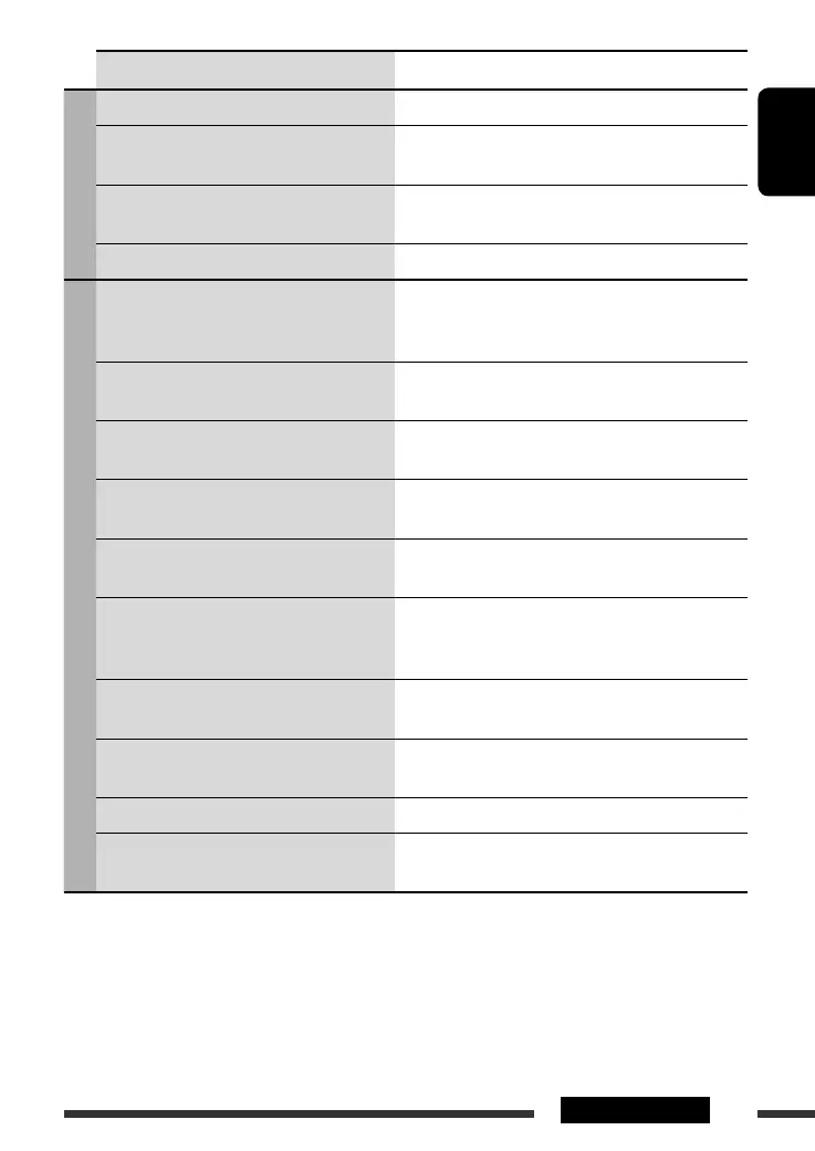 • “NO IPOD” or “NO DP” appears on the display. • Check the connecting cable and its connection.