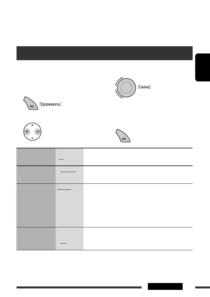 При настройке верхних, средний диапазон частот, нижних частот или громкости выполненная