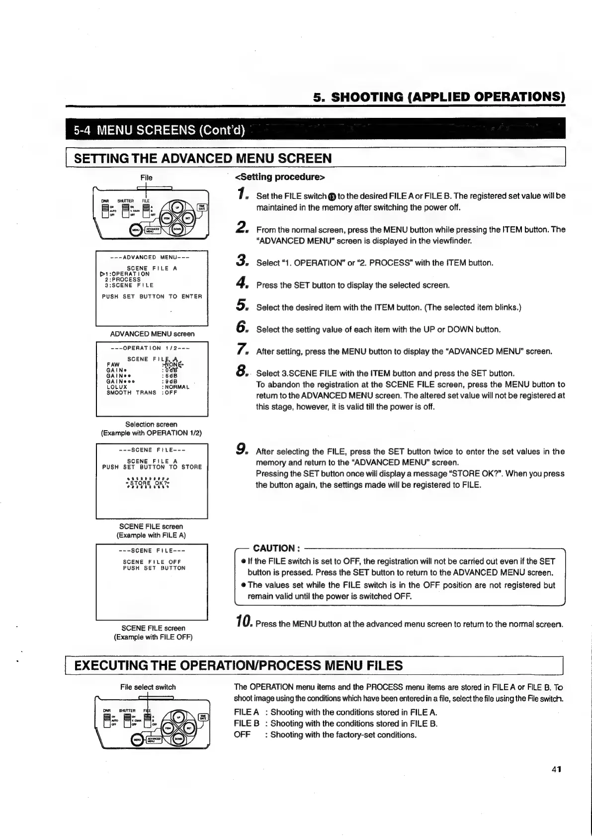 JVC KY-D29 - Setting the Advanced Menu SCIEN; Executing the Operation;Process Menu Fil€S