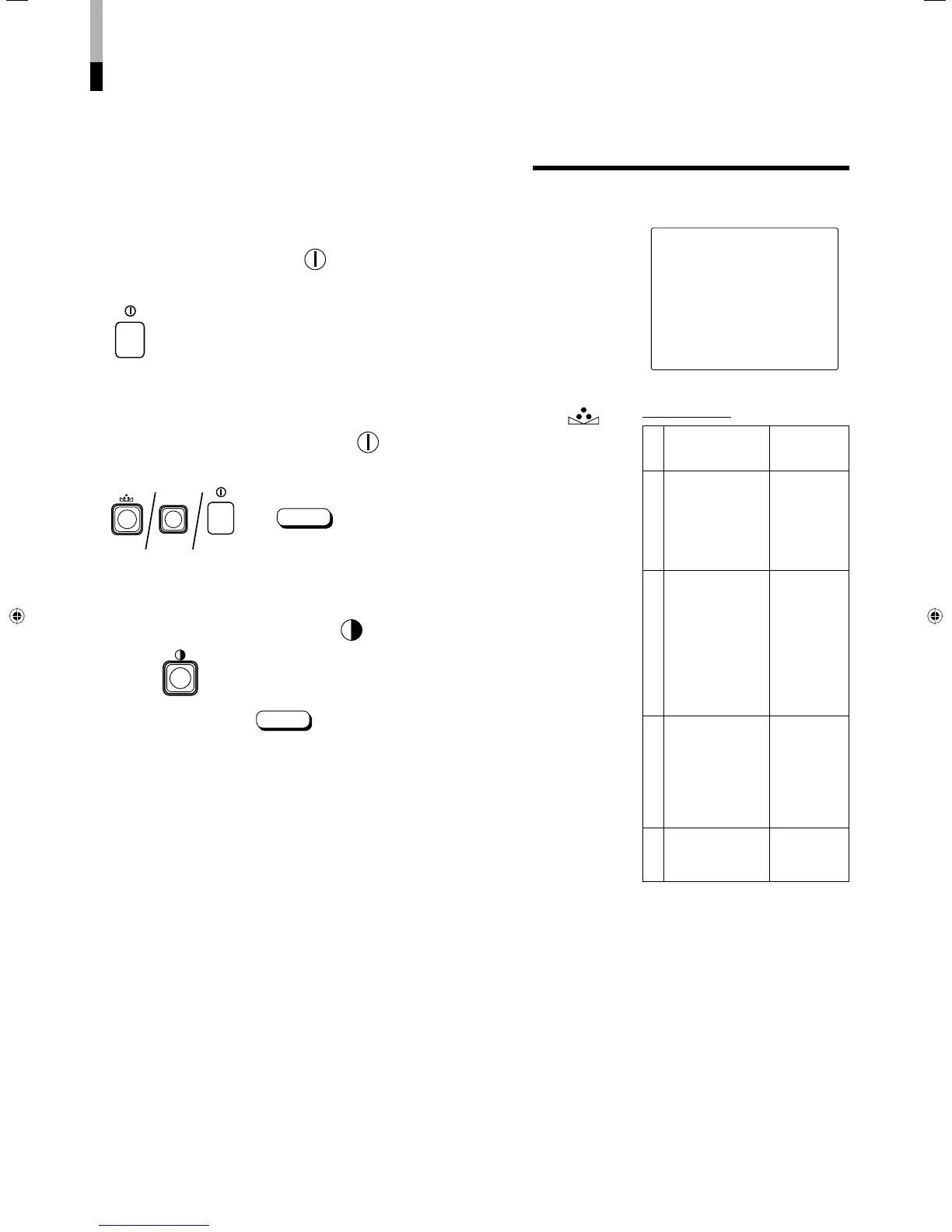 SCREEN DISPLAY AND SELECTIONS IN THE