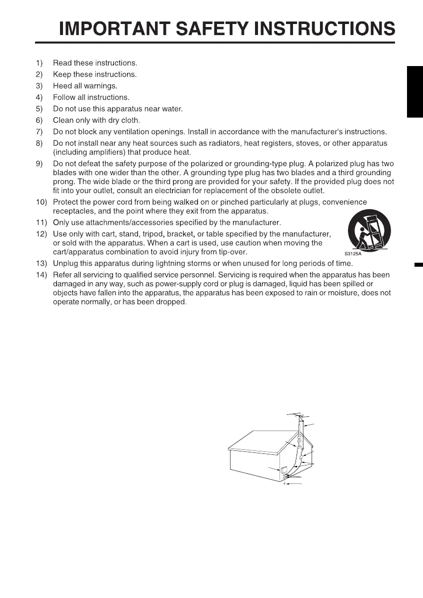 18) Do not push objects through any openings in this unit, as they may touch dangerous voltage